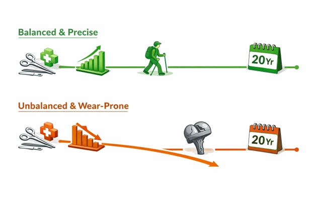 A study in the Journal of Arthroplasty highlights that even slight misalignment can increase wear rates by over 400%. The micro millimeter accuracy and obsessive soft tissue balance of the German precision approach is, fundamentally, a direct attack on this primary cause of failure. It is not just about a successful surgery next week. It is about preserving your active life 20 years from now.